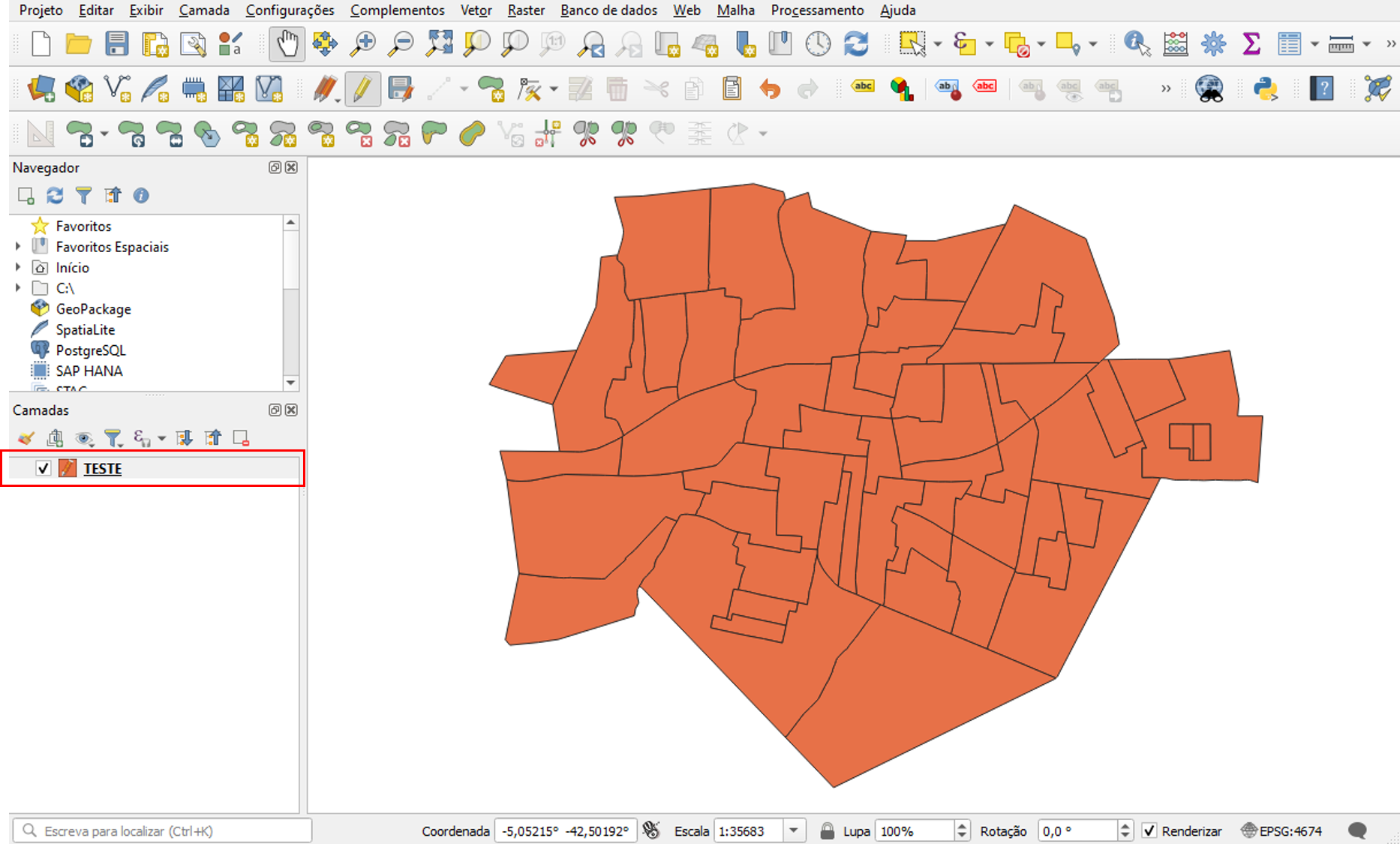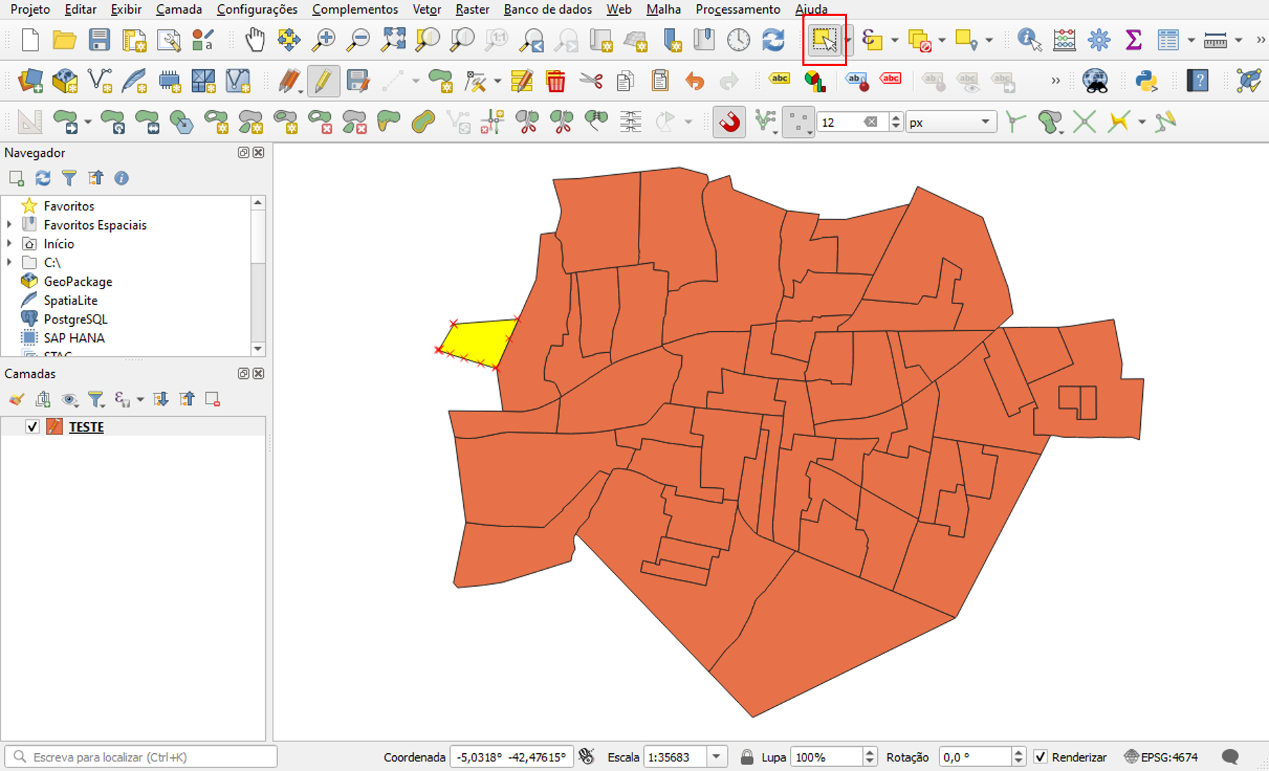 Este tutorial mostra como editar a geometria de um arquivo vetorial no QGIS. Neste exemplo usaremos uma camada do tipo polígono, porém, os procedimentos podem ser reproduzidos em camadas de pontos ou linhas. Caso seja necessário faça adaptações.