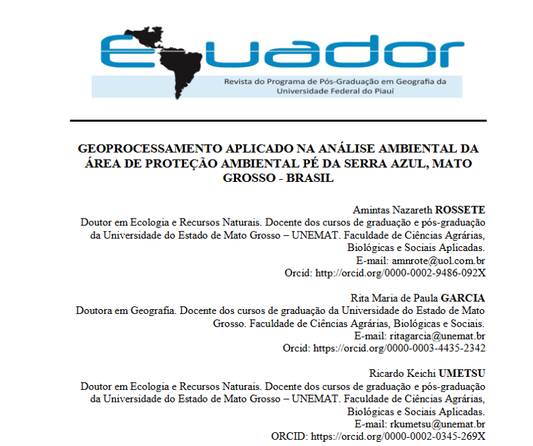 Na dica de leitura de hoje, apresentamos o estudo desenvolvido por Amintas Nazareth Rossete, Rita Maria de Paula Garcia e Ricardo Keichi Umetsu, intitulado Geoprocessamento Aplicado na Análise Ambiental da Área de Proteção Ambiental Pé da Serra Azul, Mato Grosso – Brasil.