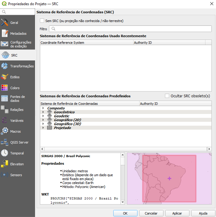 Sistema de Referência de Coordenadas define como a superfície da Terra será representada no mapa. Ele reúne três elementos principais: o sistema de coordenadas, a projeção cartográfica e o datum.