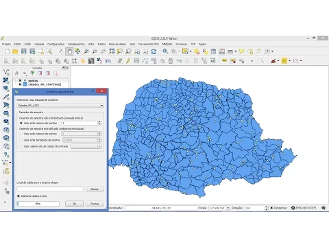 Neste exemplo, vamos criar uma camada vetorial com um total de 1.200 pontos sobre os vários municípios do estado do Paraná.
