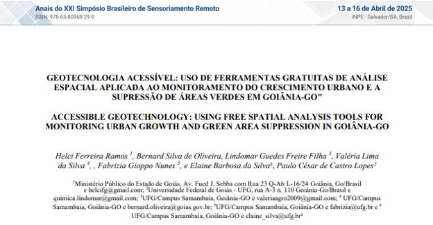 Na dica de leitura de hoje, apresentamos o estudo desenvolvido por Helci Ferreira Ramos, Bernard Silva de Oliveira, Lindomar Guedes Freire Filha, Valéria Lima da Silva, Fabrizia Gioppo Nunes, Elaine Barbosa da Silva e Paulo César de Castro Lopes, com título Geotecnologia acessível: uso de ferramentas gratuitas de Análise Espacial aplicada ao monitoramento do crescimento urbano e a supressão de áreas verdes em Goiânia-GO.